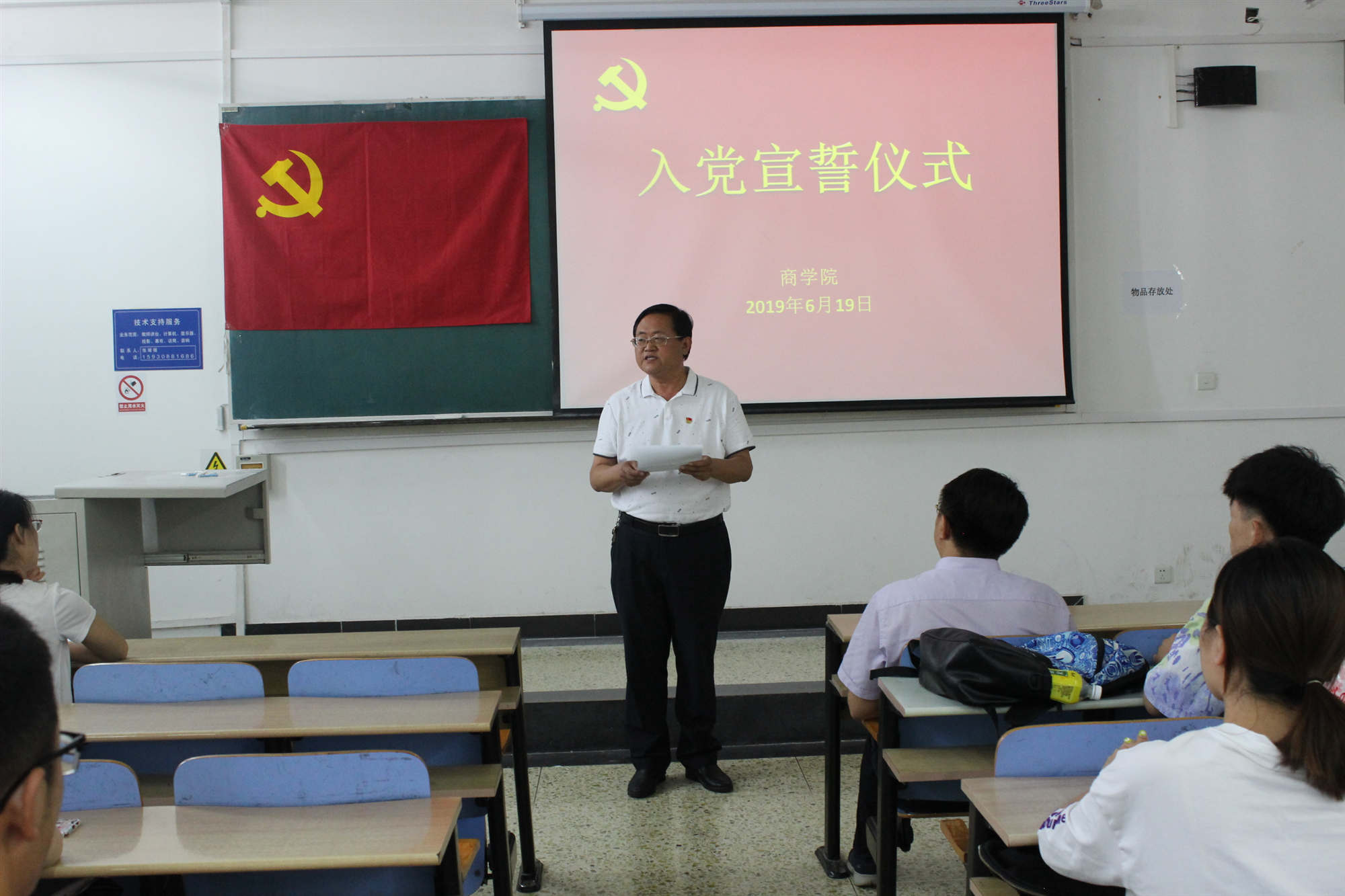 2019年6月19日中午,商公司在第三教学楼B302教室举行了员工新党员入党宣誓仪式。公司党委书记马兵林、副书记董爱民、各员工党支部书记及新发展的36名员工党员参加。宣誓仪式由公司党委办公室主任穆娟主持。