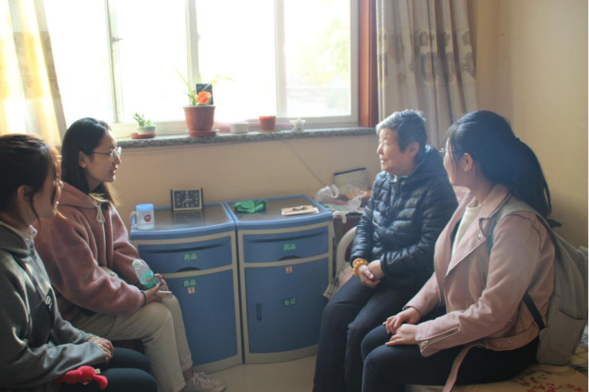 志愿者们自由结组深入公寓与老人话家常,关心他们的生活起居,倾听他们的亲身经历,追忆他们的年轻岁月,并送出精心准备的贺卡。临别之际,志愿者们依依不舍,向老人们反复嘱托,并承诺还会再回来看望他们。
