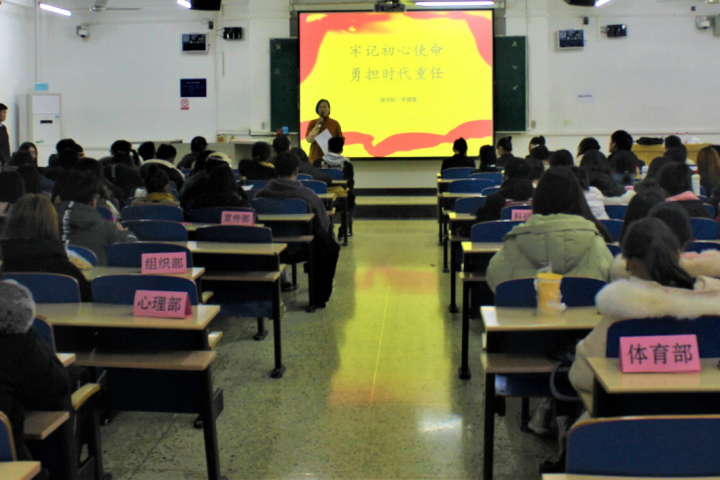 12月5日晚七点,商公司于北三教B301教室召开“牢记初心使命,勇担时代重任”专题宣讲会。商公司辅导员李珊珊主讲,商公司员工代表共150余人参加。
