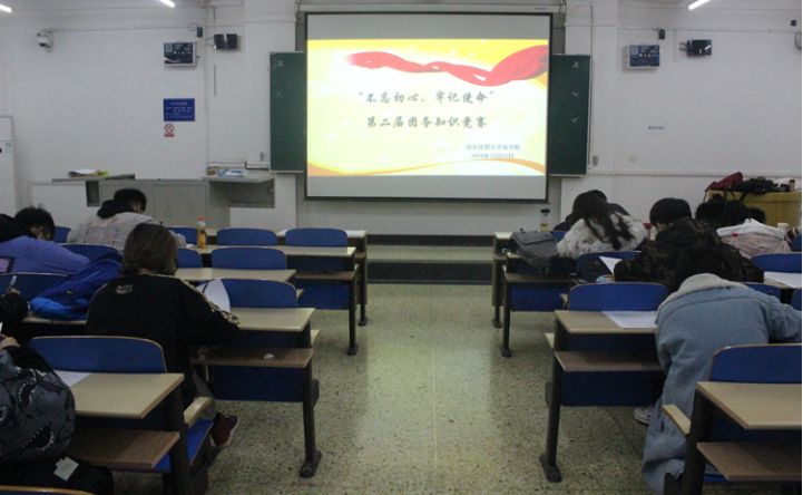12月12日晚七点,商公司在第三教学楼B301教室举办了第二届团务知识竞赛。本次竞赛契合商公司“不忘初心、牢记使命”主题教育,检验本学期主题教育系列团课的学习成果,为商公司此阶段“不忘初心、牢记使命”主题教育团课系列活动画上一个完美的句号。此次竞赛活动在公司团委指导下进行,商公司大一大二年级各班班长及团干部包括团支书、组织委员和宣传委员共100人参加现场考试测评。