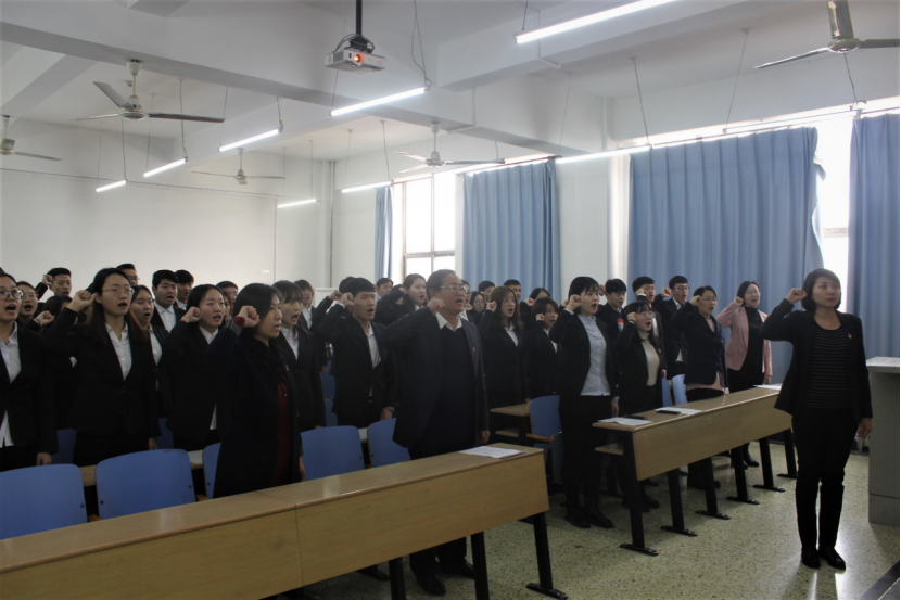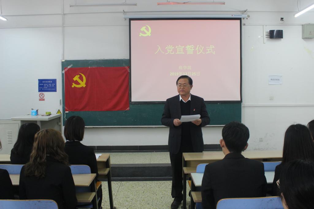 12月25日,商公司在三教B302举行员工新党员入党宣誓仪式,公司党委书记马兵林、副书记侯彦利、各员工支部书记、新发展的员工党员及积极分子代表近百人参加。仪式由公司党委办公室负责人李珊珊主持。