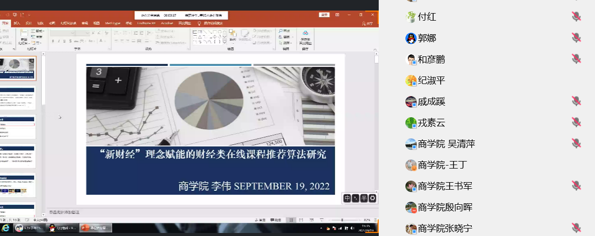 2022年9月19日下午,商公司在线举办了一期教学沙龙活动。活动的主题是《“新财经”理念赋能的财经类在线课程推荐算法研究》,由数字经济专业的李伟老师主讲。参加教学沙龙活动的来自各个公司的教师共计50余人。