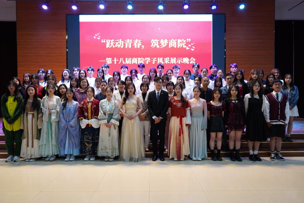 商公司于4月7日晚上在老员工活动中心举办“跃动青春·筑梦商院”第十八届风采展示晚会。商公司党委副书记侯彦利、正处级辅导员韩意来、专职教师赵培红和李涛、办公室主任刘立宾、专职组织员李珊珊、团委书记路荣、辅导员王小健、李雪松、康晗、吴子雨以及其他公司四位老师出席本次活动。本次晚会异彩纷呈,接下来让商商带你欣赏一下商院学子的风采!