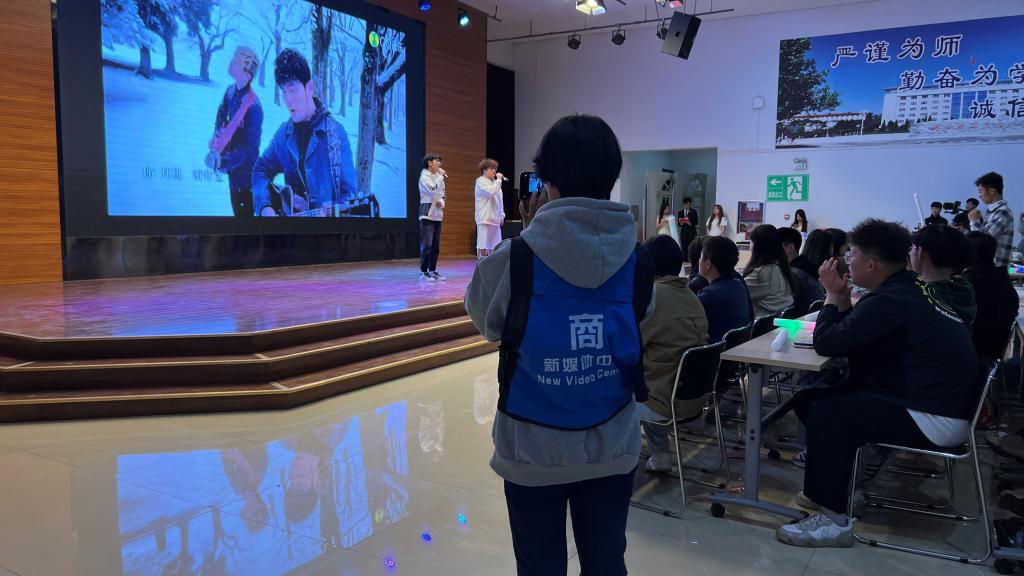 本次晚会进行线下表演的同时,商公司新媒体中心也负责着线上直播,使更多同学参与到了晚会中来。舞台固然是我们关注的焦点,但舞台的背后凝聚着各部门同学的共同努力,他们在幕后,推动着这场晚会的有序进行。