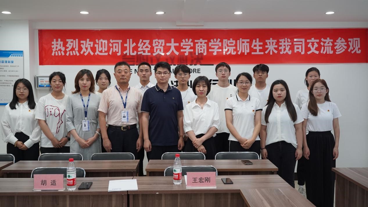 实践团第三站走进承德鸿雅集团开展交流学习。鸿雅集团总经理胡适是公司优秀员工,企业党支部书记王宏刚,市场副总经理安娜等参加本次活动。