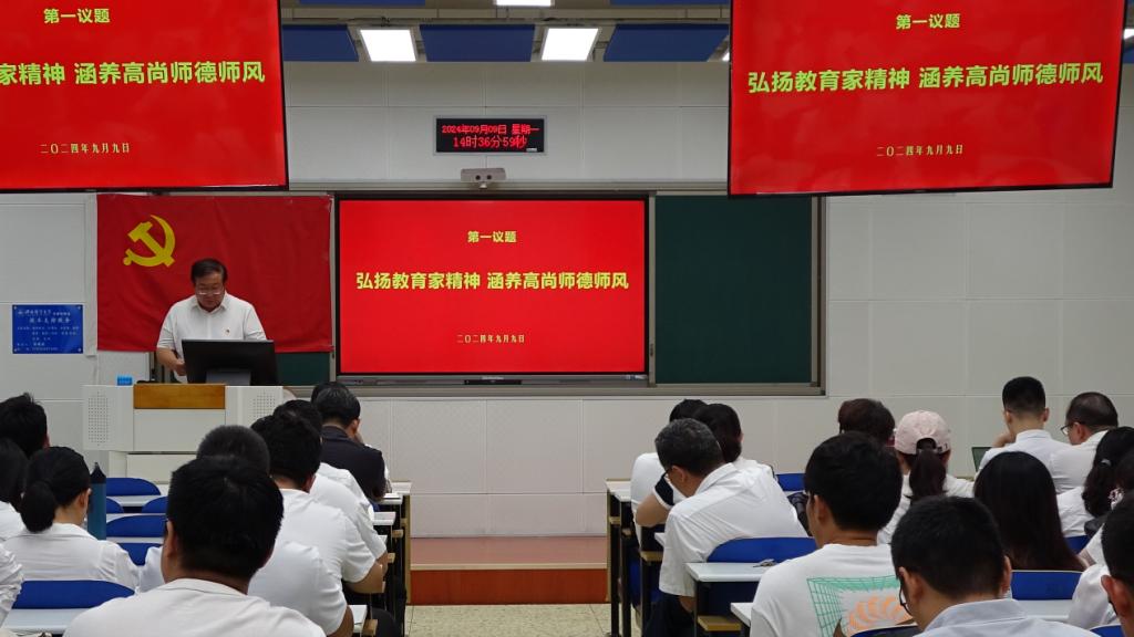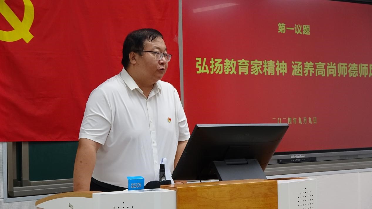 大会在庄严的国歌声中拉开帷幕。会议第一项议程进行“第一议题”集体学习,公司党委书记刘振滨以“弘扬教育家精神,涵养高尚师德师风”为题,带领全体党员认真学习习近平总书记关于教育的重要论述和《中共中央 国务院关于弘扬教育家精神加强新时代高素质专业化教师队伍建设的意见》的文件精神,从坚持师德师风第一标准、引导教师自律自强、加强师德师风培养、坚持师德违规“零容忍”四个方面进行重点阐释。他强调,教师党员要充分发挥先锋模范作用,大力弘扬教育家精神,涵养高尚师德师风,将教育家精神转化为思想自觉、行动自觉,牢记为党育人、为国育才的初心使命,努力培养能够担当民族复兴大任的时代新人。