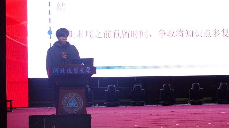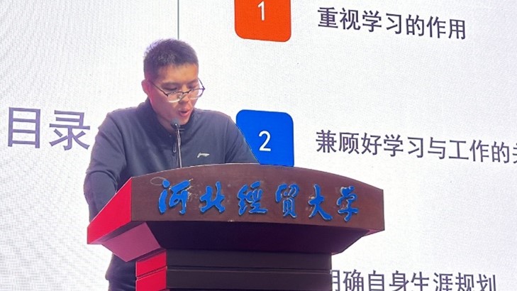 张颢严以回首四年的光阴开篇,着重分享了自己处理学习和生活的对策,他指出在延续高中的好习惯,贯彻终身学习的理念的同时,也要领悟老员工活的美好。学习并不是埋头苦干无目的地学,而是要博采众长地学,有针对性地学,做到统筹兼顾。