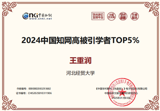 bg大游集团官方网站王重润教授入选2024中国知网高被引学者Top5%