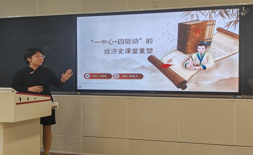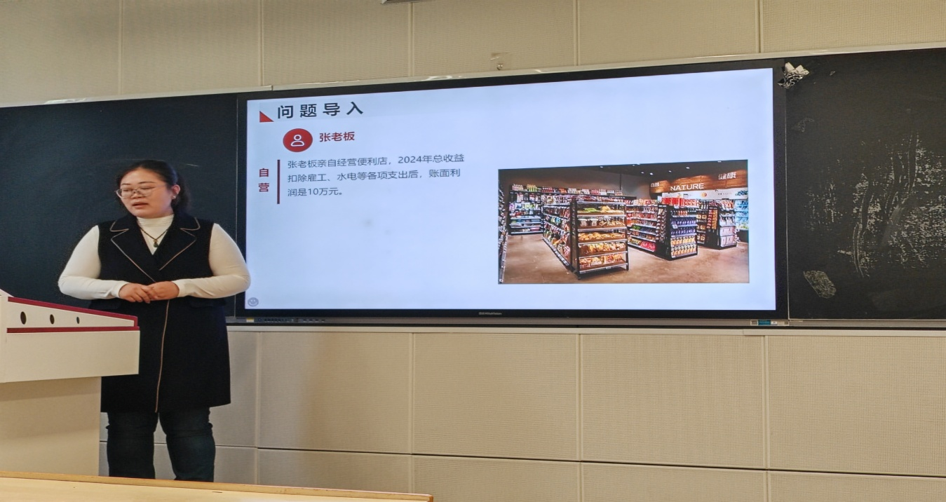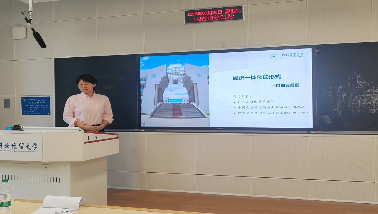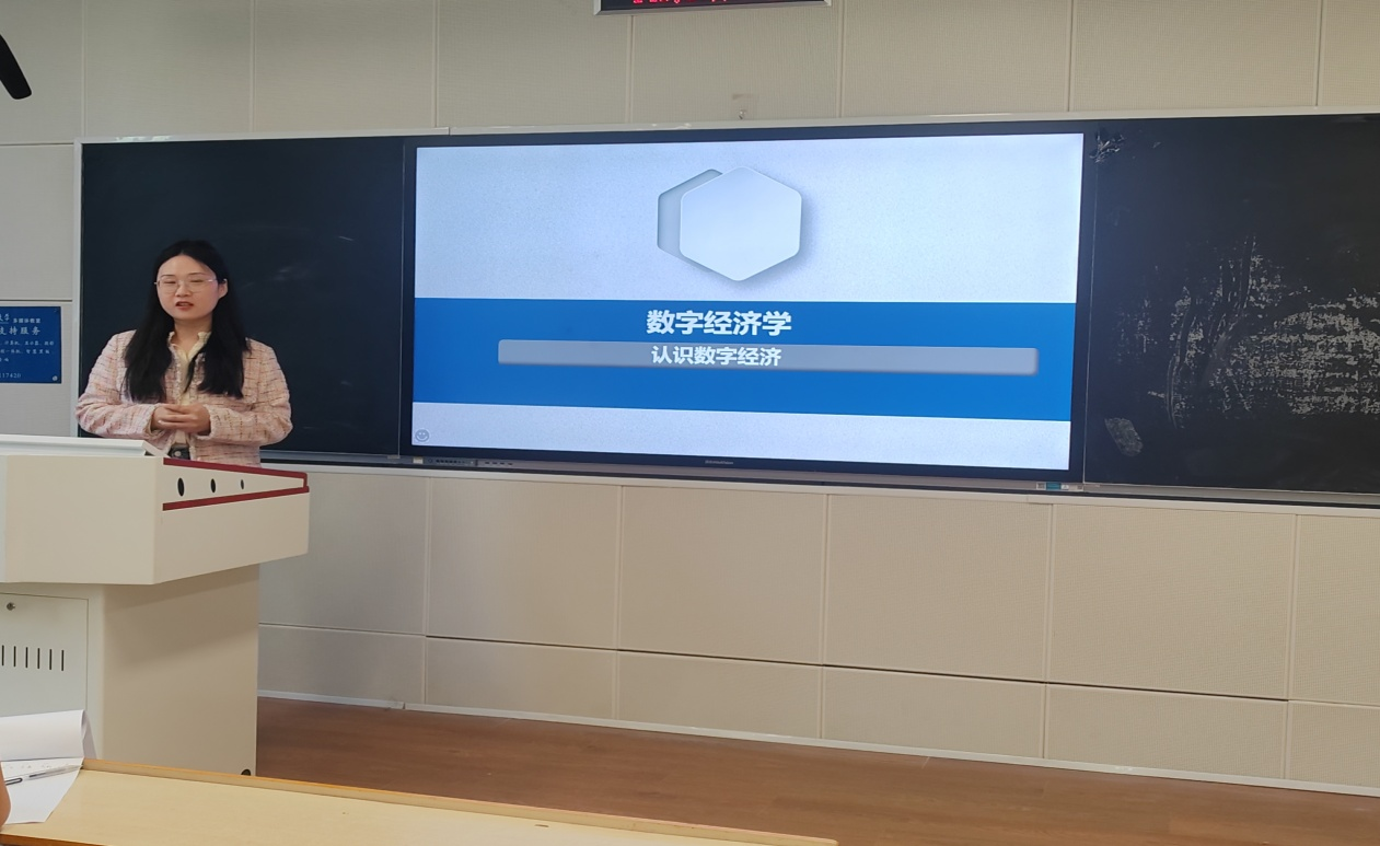 比赛现场,咸星兰、郎郸妮等六位青年教师依次登台展示。咸星兰老师以“经济学中的成本”为核心教学内容,系统梳理了知识传授、能力培养与价值塑造三大教学目标,深入探讨了教学重难点及实施策略;郎郸妮老师围绕“经济一体化的形式——自由贸易区”展开讲解,以清晰的学习目标启发教学思路;韩梦莹老师在“认识数字经济”课程中,巧妙结合丰富的生活实例,生动阐释数字经济的核心内涵、重要意义及其面临的挑战。张妍、薛龙飞、张美岭等老师也分别从“物流配送”“西方经济学”“经济史”等课程出发,以精心设计的教学环节、生动的讲授方式展示教学成果。