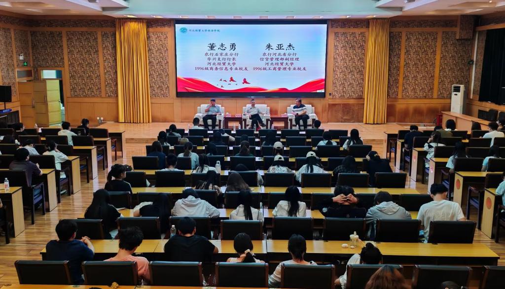 5月25日,bg大游集团官方网站在会议报告厅成功举办“员工领航‘职’引未来之我的银行从业路”主题访谈活动。1996级员工农业银行河北省分行信贷管理部副经理朱亚杰、1996级员工农业银行石家庄分行华兴支行行长董志勇、2007级员工农业银行石家庄分行信用卡中心副经理李庆漭、2016级员工招商银行石家庄分行信贷客户经理刘博受邀参加访谈,bg大游公司党委书记刘振滨、党委副书记侯彦利、院员工会主席巩思男分别主持采访。