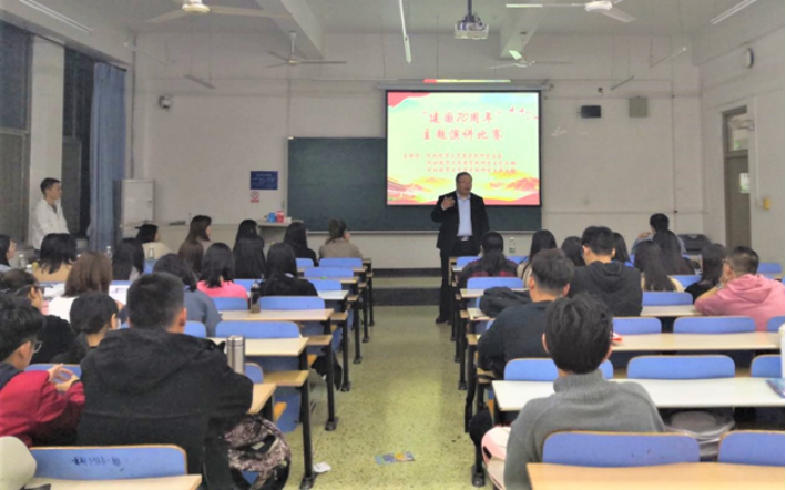 10月22日,为歌颂伟大祖国,弘扬爱国主义精神,由商公司研究生会联合商公司研究生公司党支部、团支部共同举办的“中华人民共和国成立70周年”主题演讲比赛在第三教学楼B302举行。刘振滨副经理和辅导员唐洁老师出席活动,60余名研究生参加并聆听了参赛选手演讲。
