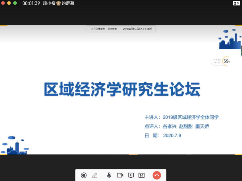 7月9日上午,商公司举办了“商学纵横”之理论经济学研究生论坛。受疫情影响,此次学术活动以线上会议的方式进行。2019级区域经济学3名研究生参加了本次论坛。2018级研究生谷孝兴、赵甜甜、墨天娇对论坛报告进行了点评。