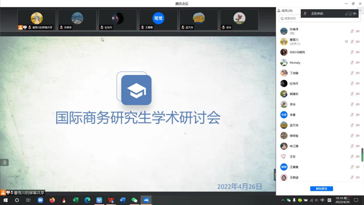 2022年4月26日晚上,商公司2021级国际商务研究生于线上举办了“商学纵横”之国际商务研究生论坛,2021级国际商务专业全体研究生参加了此次学术研讨会。