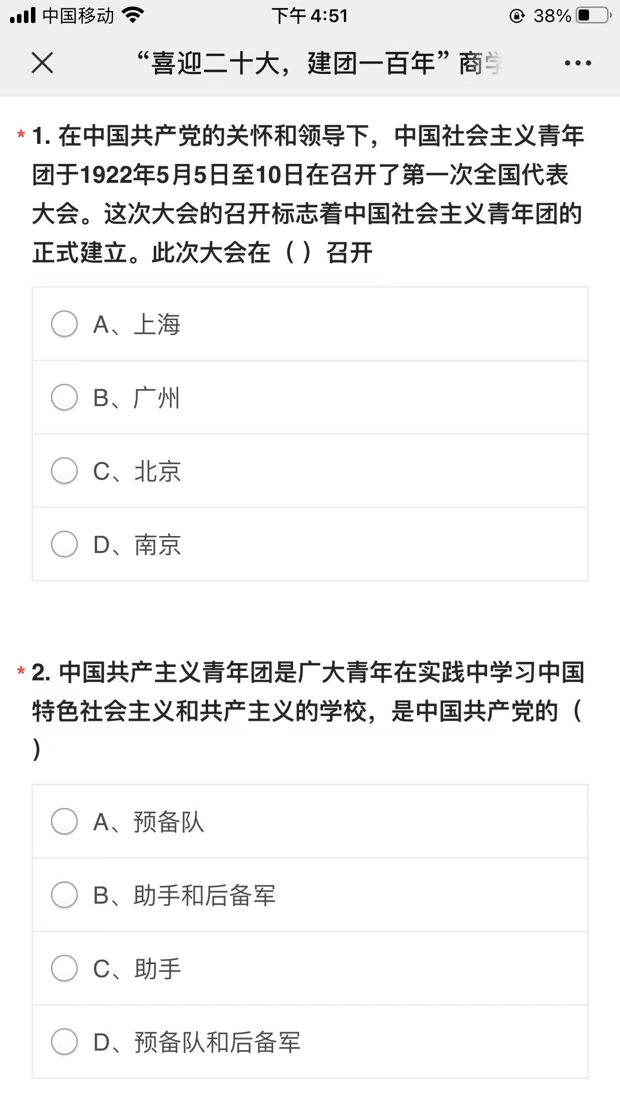 商公司举办“喜迎二十大,建团一百年” 研究生党团知识竞赛