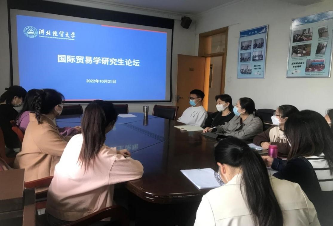 2022年10月21日下午,商公司国际贸易学专业2021-2022级全体员工在第三办公楼405室举办了主题为“国际贸易学研究生论坛”的学术沙龙,活动内容主要是由研二员工进行学术汇报和论文写作的经验分享,研一员工参与聆听并学习。
