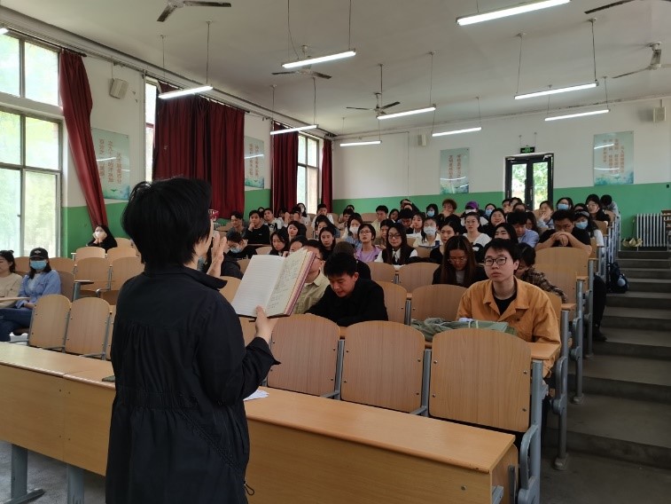 商公司于2023年4月18日在第一阶梯教室召开全体在校硕士研究生班会,辅导员唐洁老师向员工传达近期学习生活要点。