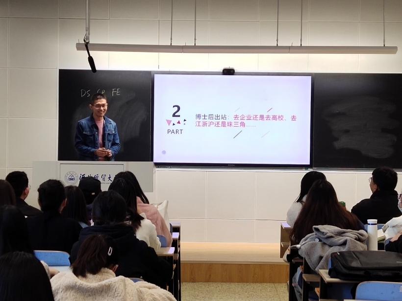 班会上,丁立会老师首先介绍了李涛老师的求学经历及科研成就。接着李涛老师围绕着“人生处处是选择”的主题,分享了他的求学历程及职业选择过程。按照从员工时期到博士后出站的时间顺序,李老师结合自身经历,与同学们分享了关于人生选择、学术研究、专业学习等方面的宝贵经验。他强调了平台选择、个人兴趣、个人能力、专业学习等方面的重要性。最后,丁立会老师做出总结并鼓励同学们要以李涛老师为榜样,夯实专业知识,积极进行学术研究,力争做好每次重要的选择,不留遗憾。