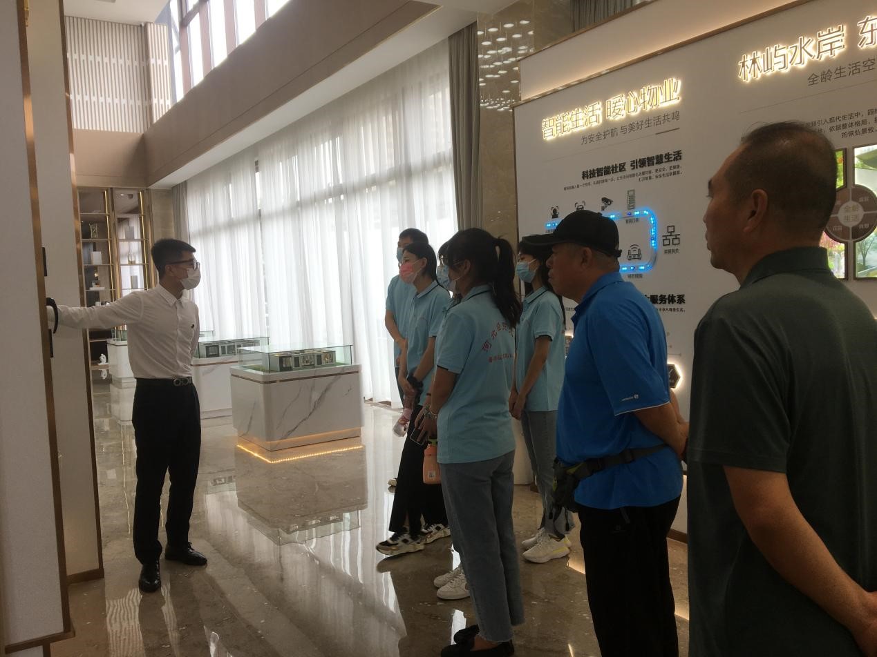 师生团队6月29日抵达雄安新区南部毗邻的高阳县进行主题调研。高阳县住建局领导宋连宗、梁永辉首先带领团队参观了位于县城北部新城核心位置的新楼盘乾城锦唐。了解到乾城锦唐是高阳新现代高端住区的典范,其具有宜居的环境以及高规格配套设施,立足高阳北部新城优质板块之中,享受雄安新区房地产改革的外溢效应。