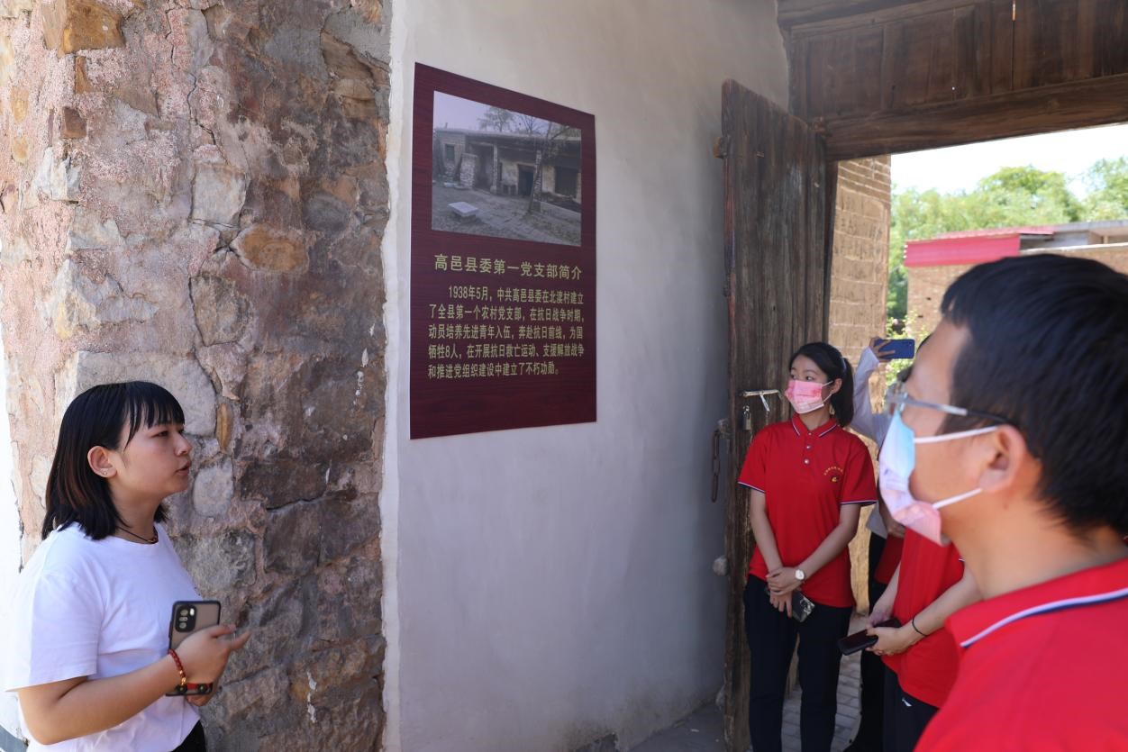 实践团第四站走进高邑县委第一个基层农村党支部——北渎村党支部参观学习。1938年,北渎村党支部建立,开创了高邑县红色革命史,从此党组织带领全县人民以北渎村为核心开展抗战,留下了许多英勇抗敌的事迹。北渎村至今仍留有许多抗日战争时期的遗迹、遗物,实践团在党支部副书记段栋芳的带领下,从旧址房间到实物展厅,从碾盘地道到党员活动室等场所,详细了解了北渎村红色教育基地的革命历史、发展历程、成立初期的发展形势以及每一个革命先辈的红色故事,推动了实践团党史学习教育走深走实。