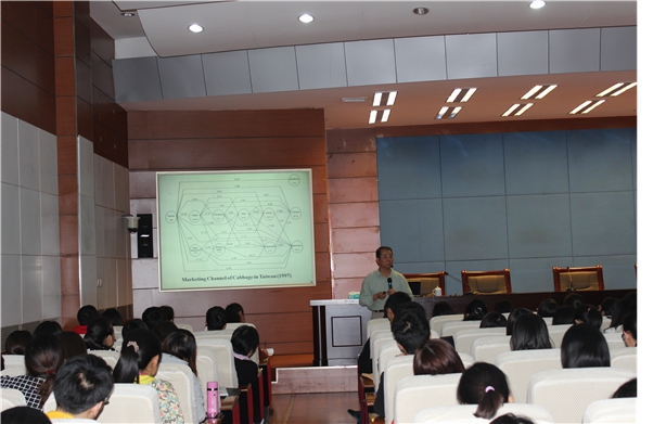 报告中,李皇照向大家详细地介绍了台湾农产品流通与批发市场的发展状况。首先,他由一般农产品的特性引出了农产品市场的特性、农产品在流通中应担当的职能,以及农产品流通效率的重要性。通过大陆与台湾农产品流通与批发市场的对比,他指出了大陆农产品批发市场的发展前景。互动环节中,同学们踊跃发言,李皇照对同学们提出的个性问题以敏锐的思维进行了耐心细致的解答。