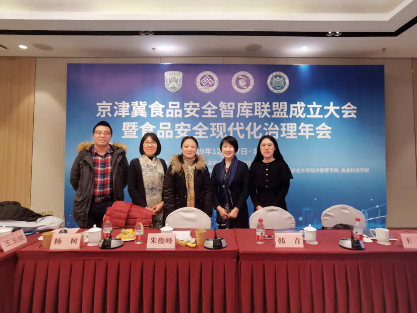 2019年12月7日,由中国农业大学北京食品安全政策与战略研究基地主办的“京津冀食品安全智库联盟成立大会暨食品安全现代化治理年会”在北京金码大厦举行。公司新农村发展研究中心主任马彦丽、副主任赵建欣、成员曹亚楠、戎素云教授等四位老师应邀参加。