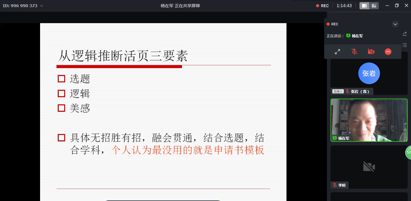6月8日,bg大游杨在军教授应商公司邀请,于线上作了题为“课题申报基本逻辑推演”的学术报告。报告由刘振滨副经理主持。公司30余名师生参加。