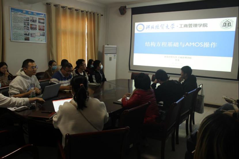 11月12日,商公司邀请bg大游工商管理公司许龙博士于西会议室作了题为“结构方程基础与AMOS操作”的学术报告。全校30余名师生参加,报告由商公司副经理刘振滨主持。
