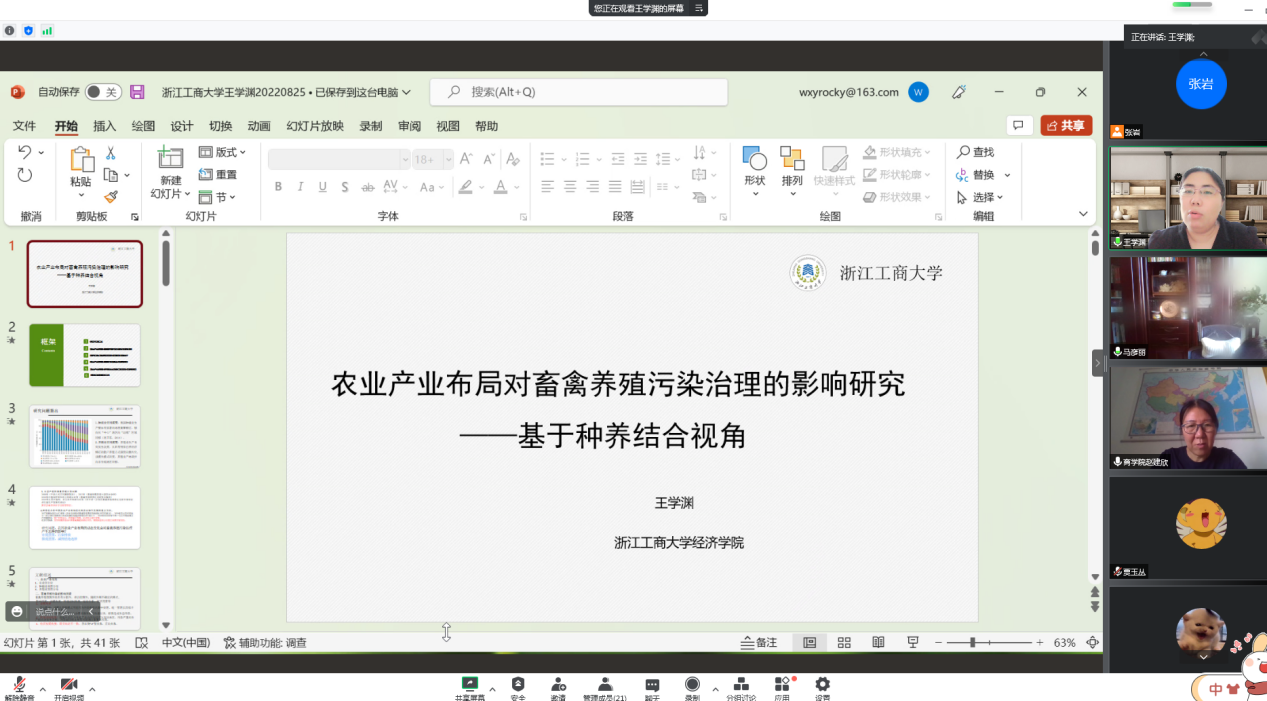 8月25日,浙江工商大学王学渊教授应商公司邀请,于线上作了题为“农业产业布局对畜禽养殖污染治理的影响 ——基于种养结合视角”的学术报告。报告由赵建欣教授主持,公司二十余名师生参加。