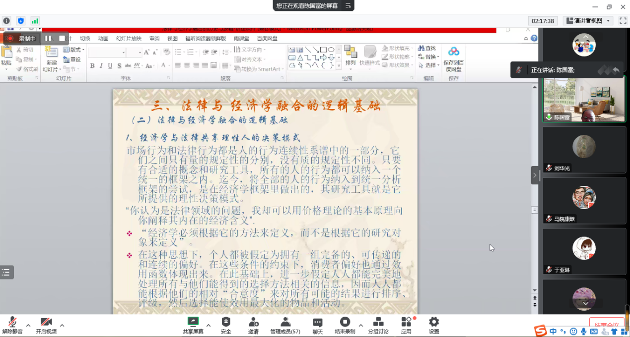 10月21日,南开大学博士生导师陈国富教授应商公司邀请,于线上作了题为“法律与经济学融合的历史与逻辑”的学术报告。报告由刘华光经理主持,公司五十余名师生参加。