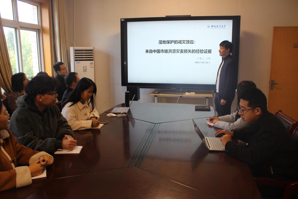 10月21日,bg大游集团官方网站闫硕博士于西会议室作了题为“湿地保护的减灾效应:来自中国市级洪涝灾害损失的经验证据”的学术报告。报告由bg大游集团官方网站副经理王法涛主持,公司30余名师生参加。