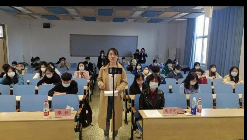 首先,李婷老师做开场致辞。她说明了举办本次会议的目的和意义,介绍了会议议程并对参会的企业爱德会展总经理崔翔勇及二十一家企业的招聘内容作出简单讲解。