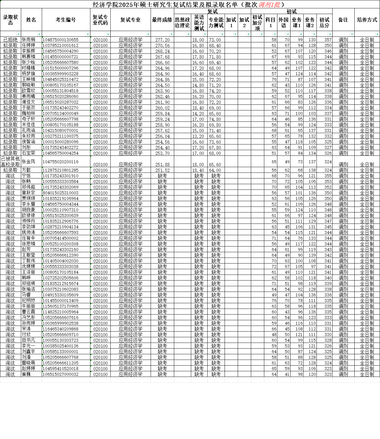 2025年硕士研究生复试结果及拟录取名单(批次调剂1批)