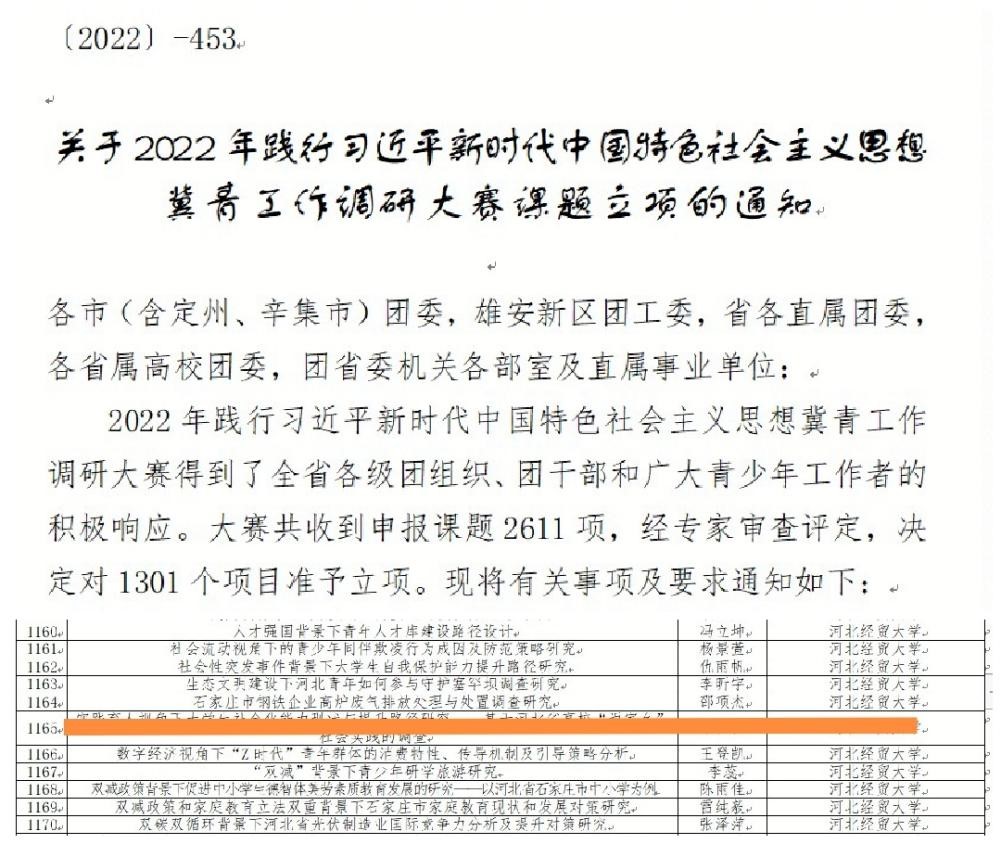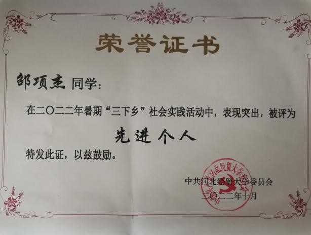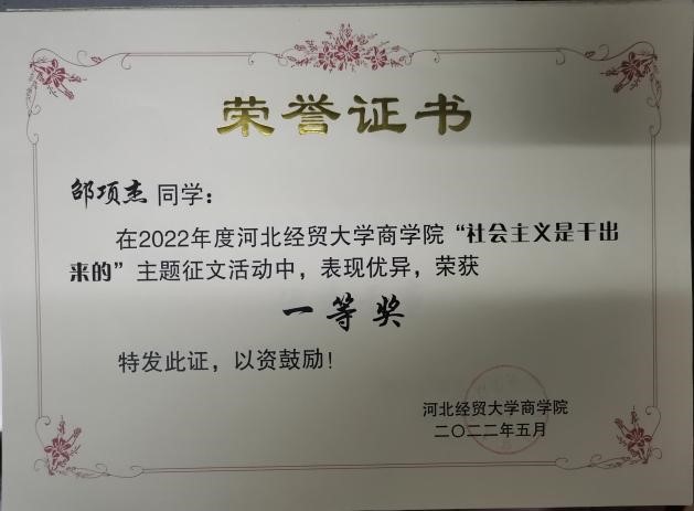 在课堂知识之外,注重培养自己的自学能力和独立钻研精神,积极参加各类创新创业大赛,获2023年老员工创新创业训练计划项目国家级立项4项;2022年“挑战杯大赛”省级一等奖、“创青春大赛”省级三等奖;2023年调研河北省级立项3项;2022年冀青调研大赛省级立项6项;2022年bg大游科研助困、科研课题立项4项;此外,在节能减排大赛、市场调研大赛、互联网+等多项赛事均获得奖项。2022年在省级期刊发表论文《社区团购可持续发展的路径分析》《我国闲暇消费作用及未来发展趋势》。