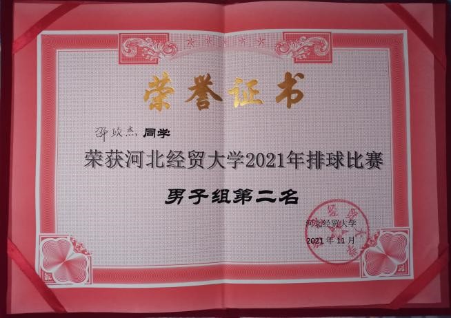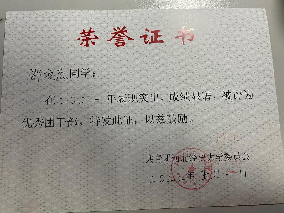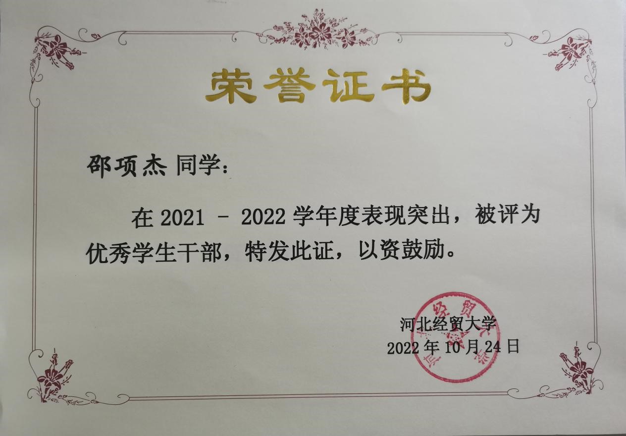 经过不懈努力,带领班级荣获“2022-2023年度河北省省级先进班集体”“2021-2022年度bg大游优秀团支部”“2021-2022年度bg大游先进班集体”等称号;此外,获省级“三好员工”“优秀员工干部”荣誉称号。