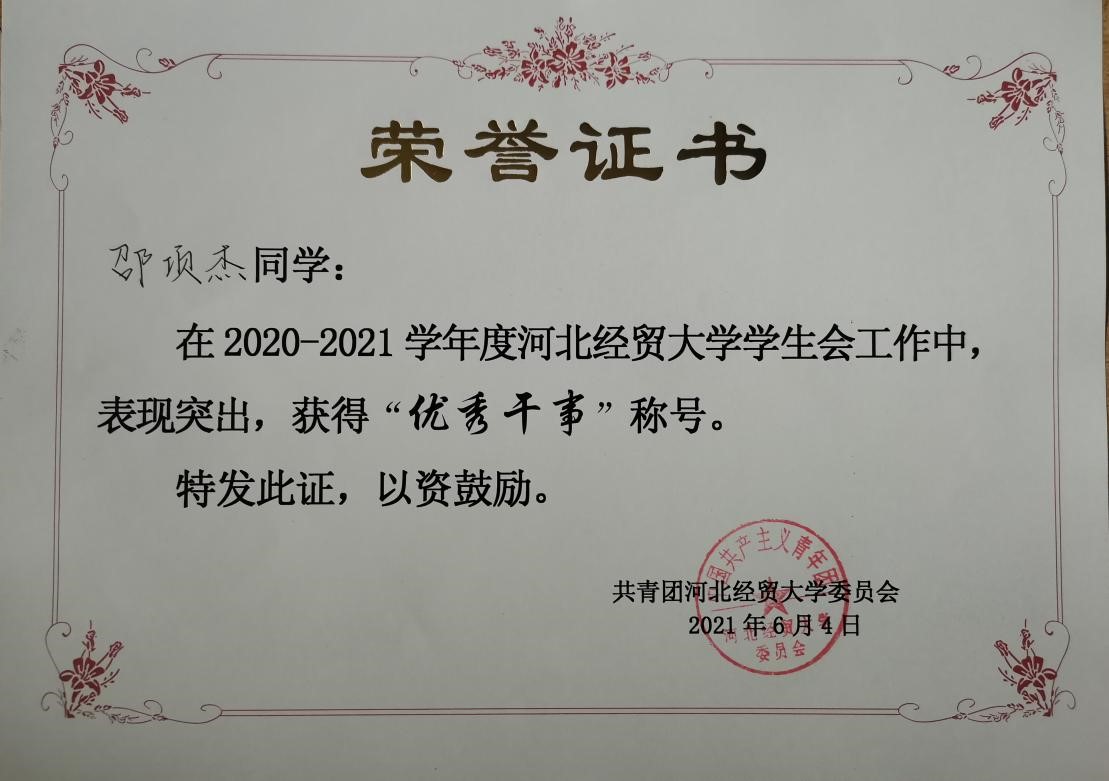 2020-2021年度在校员工会办公协调中心工作勤勤恳恳,组织筹备校“青马工程”、员工干部培训、暑期社会实践等多项大型活动,积极参与自强之星、五四青年奖章等评比活动,组织西部计划等品牌活动的开展,服务覆盖员工若干名,具有较强的为同学服务的意识,于2021年6月荣获bg大游员工会“优秀干事”荣誉称号。