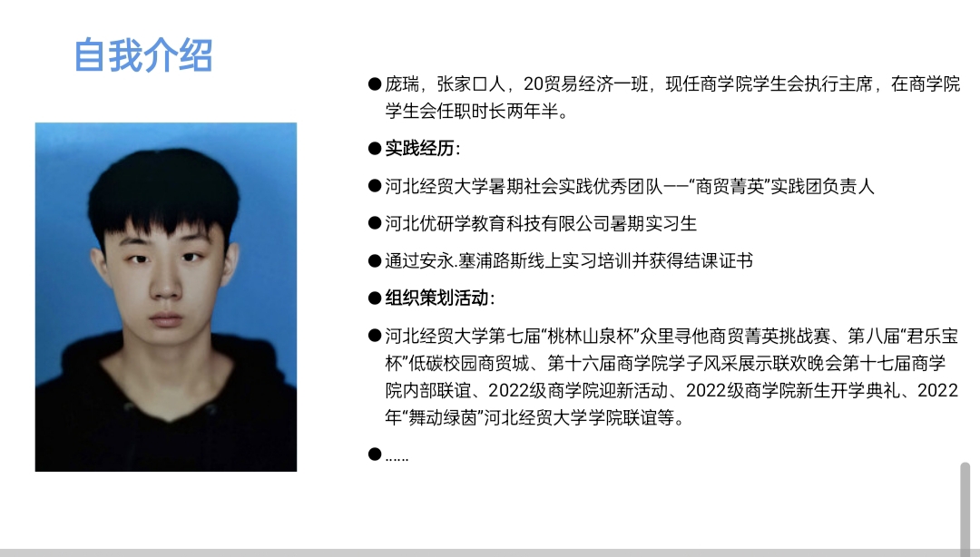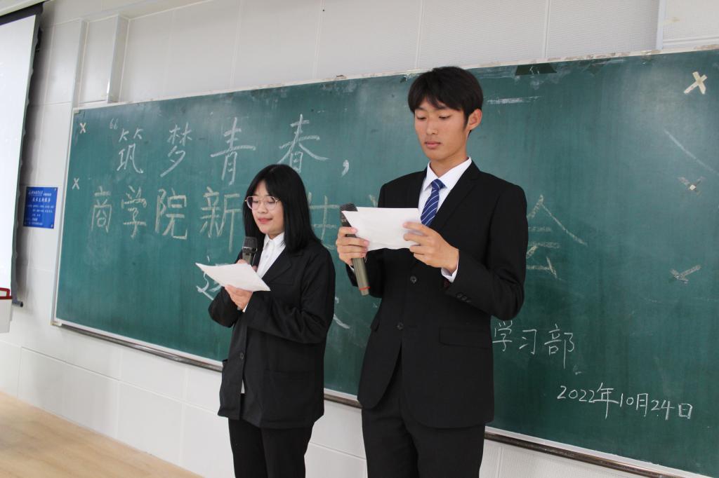 10月24日,商公司于北三教B301举办以“筑梦青春,逐梦未来”为主题的第十八届新老生经验交流会。会议由商公司员工会学习部组织,以线上线下相结合的方式召开。商公司党委副书记侯彦利、团委书记路荣、团委副书记张可晴、员工会执行主席乔世瑶、七位优秀学长学姐及商公司220余名员工参加。会议由郭子豪、孔格岩主持。