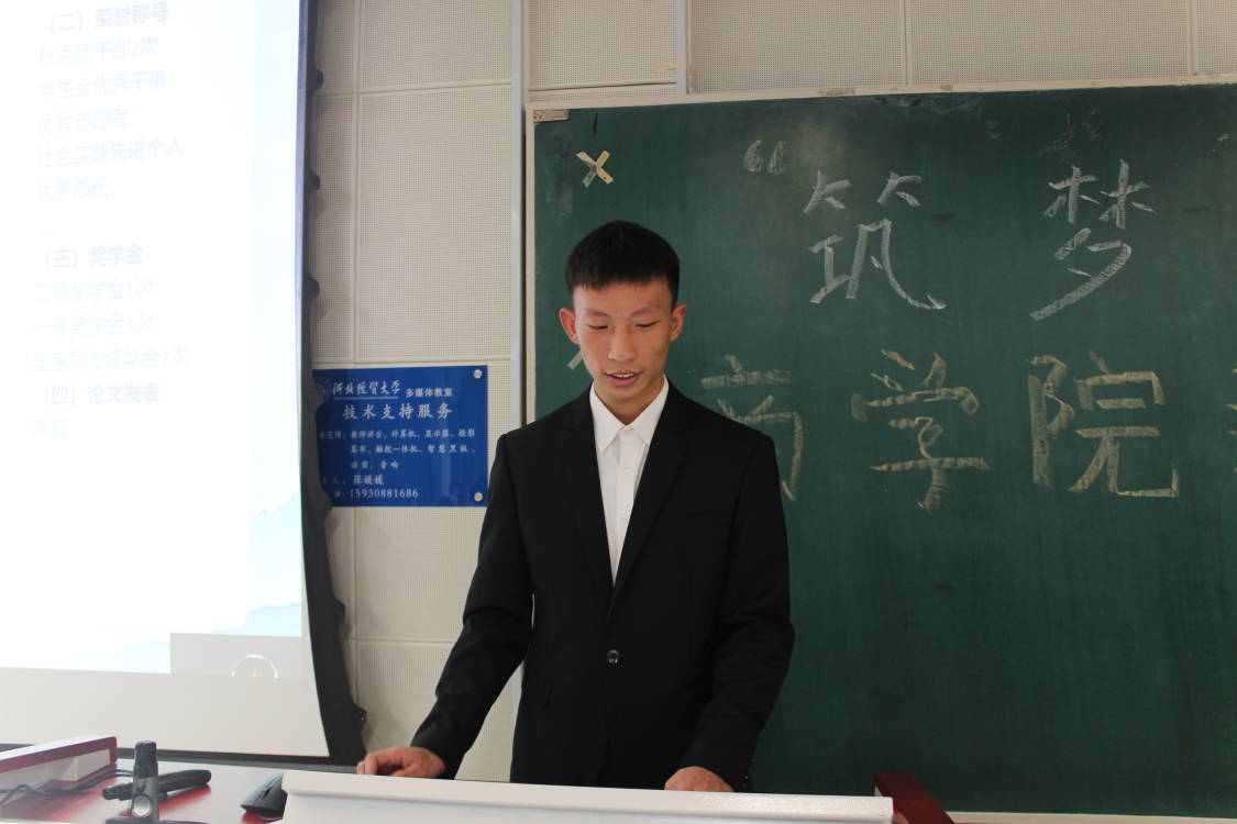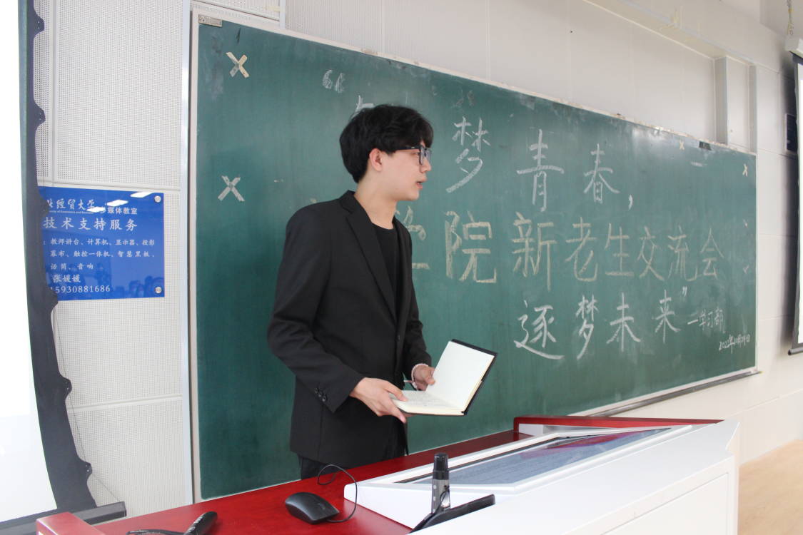 王登凯对新生未来规划、如何培养科研兴趣等方面提出建议并向新生分享了自己的经验。王登凯希望同学们处事悠然,丰富内涵,充实生活,保留对未来的期待。