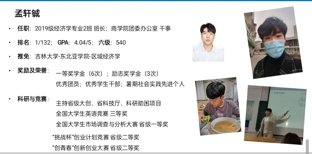 马吉杰、庞瑞和孟轩铖从老员工活不只有学习,要积极寻找自己的无限可能等方面进行分享。其中马吉杰提出要走出宿舍、认真学习专业课、参加科研项目和学科竞赛,从而不断充实自我。他认为,真正的老员工活不是漫无目的的内卷,而是在体验世界享受校园的同时,在身心上提升自己。庞瑞和孟轩铖从积极参加活动、明确定位,拒绝摆烂、加入社团组织等向新生分享经验,鼓励同学们学习之余积极参加活动,丰富老员工活。