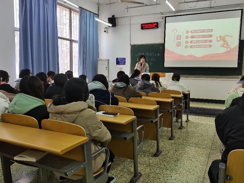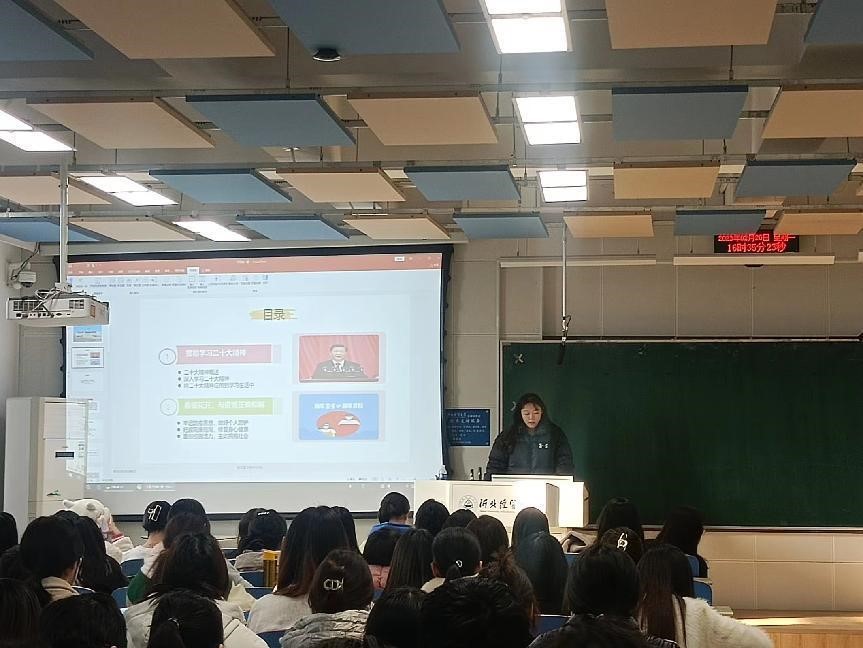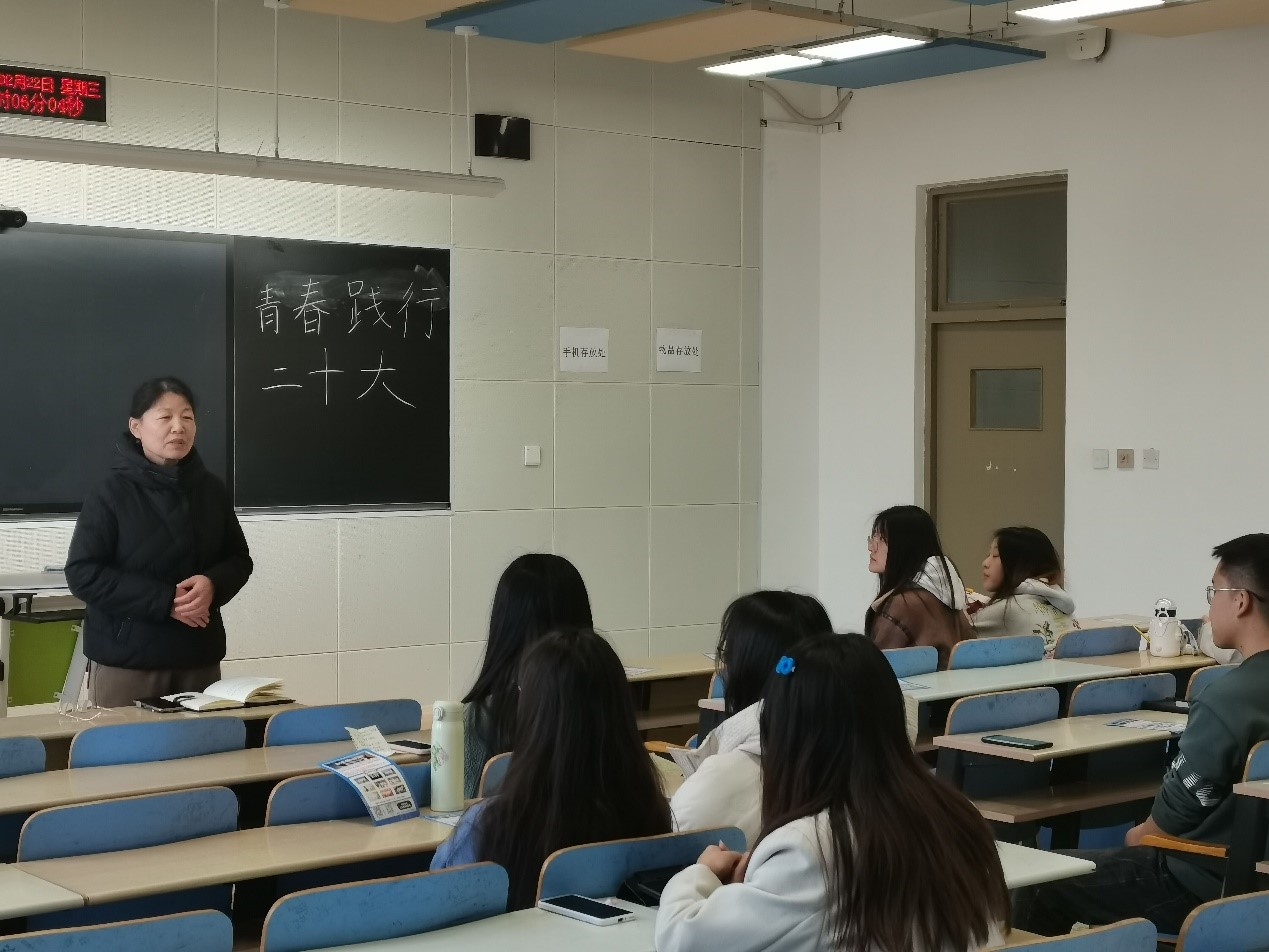 辅导员老师们带领员工深入学习党的二十大报告,引导同学们坚定历史自信、增强历史主动,守正创新、勇毅前行;鼓励青年员工从党的百年奋斗征程中感悟共产党人的精神谱系,从波澜壮阔的抗疫斗争中体会伟大的抗疫精神;希望同学们立鸿鹄之志,将自己的学习奋斗目标同民族复兴结合起来,用实际行动践行“小我融入大我,青春献给祖国”的铮铮誓言。