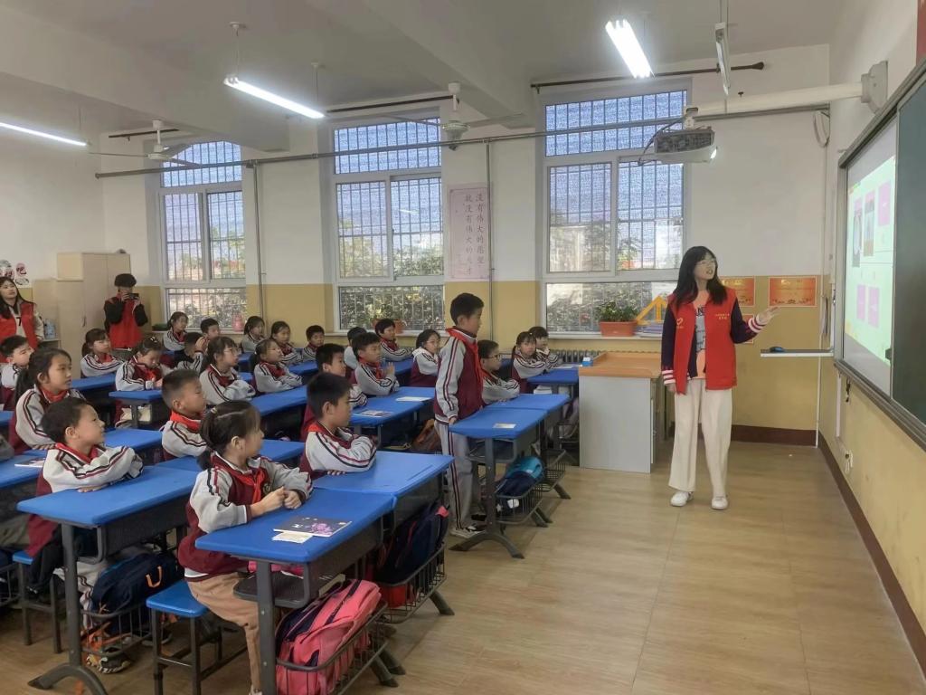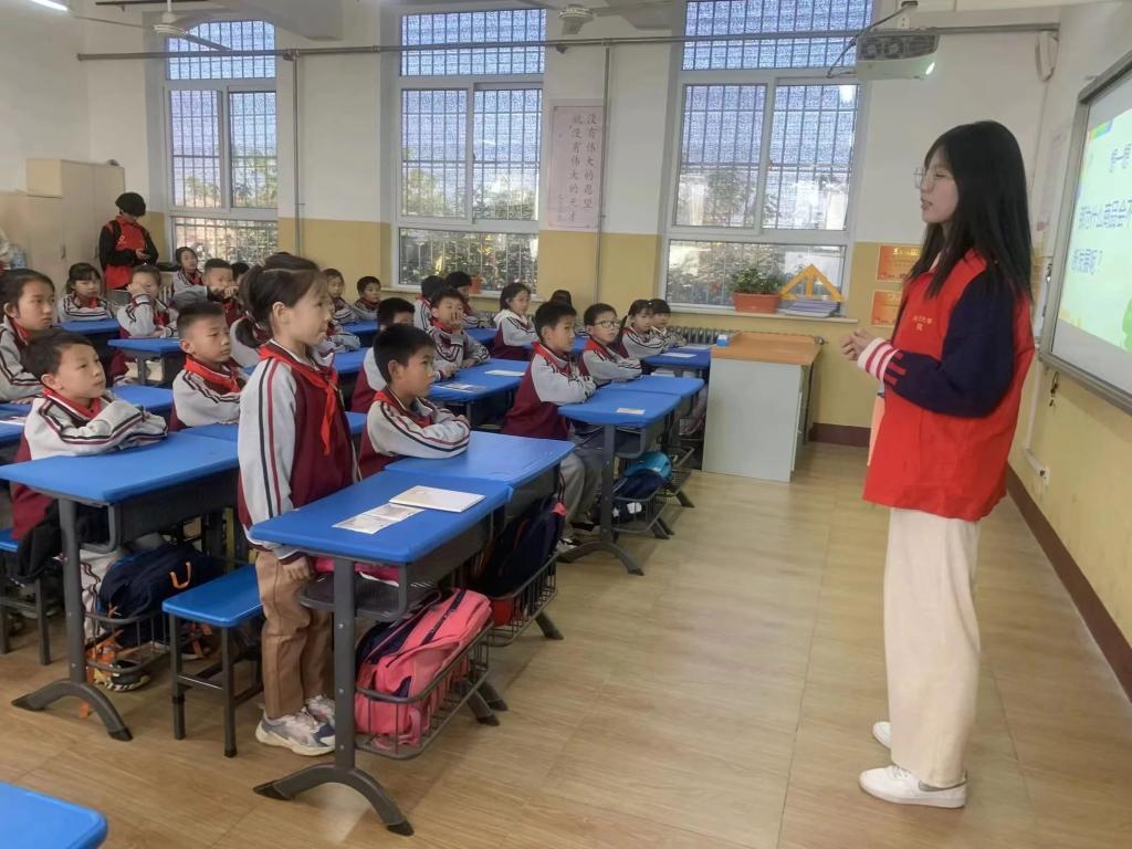 2023年11月6日,bg大游商公司专职辅导员老师王小健、吴子雨与青年志愿者服务大队带领老员工志愿者教师团队来到了东营小学,开启了新一期的“筑梦财商”经济学小课堂。