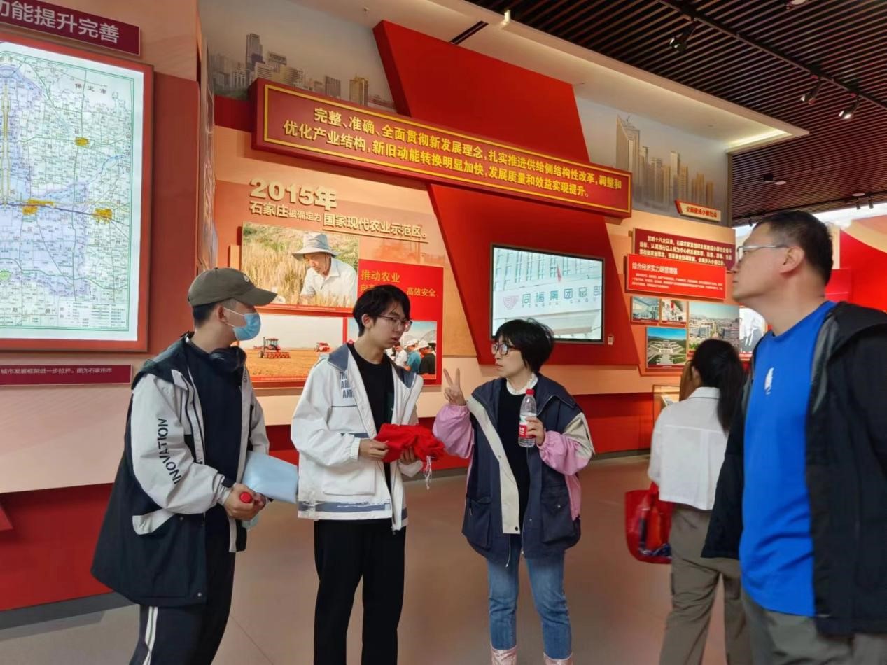 第三展厅为“筑梦石家庄”,该展厅讲述了新中国成立以来,石家庄人民在党的带领下进行新型现代化工业城市建设、城市改革方面奋发图强的发展历程和辉煌成就。同学们通过参观可以了解石家庄在新中国成立后各项产业的发展情况,尤其是石家庄工业对国家的贡献。