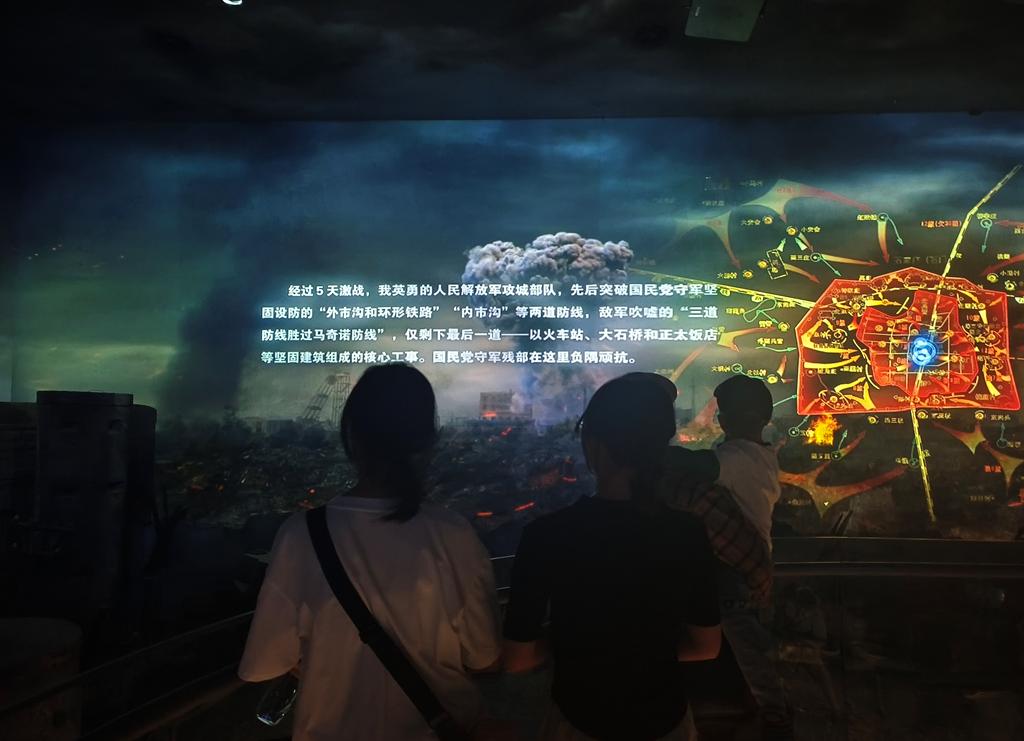 第二展厅主要展示了石家庄解放战役的全过程,以及解放后为新中国成立作出的重要贡献。通过观看历史影片和听讲解员生动讲解,同学们知晓了石家庄人民在解放战争中的英勇事迹,深刻领悟到石家庄在解放战争中的重要地位。
