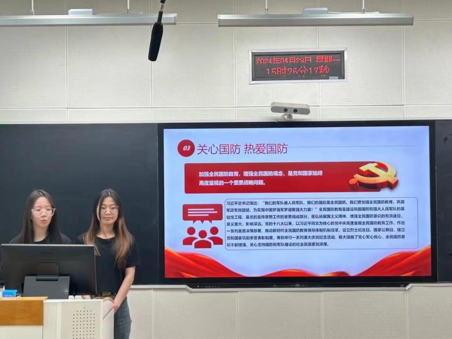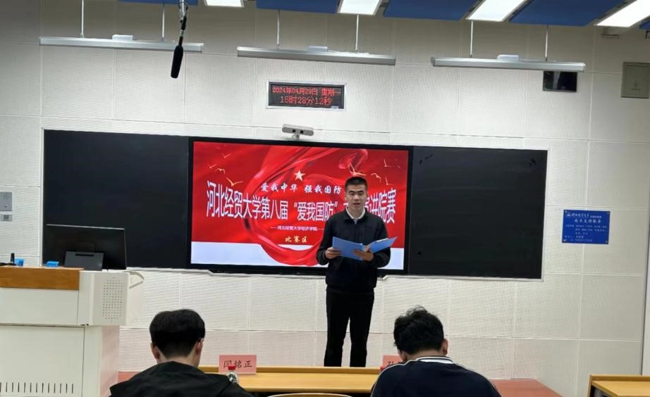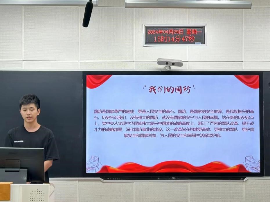 “国无防不立,民无兵不安”。为深入开展学习贯彻习近平新时代中国特色社会主义思想主题教育,贯彻落实党的二十大精神,深化全民国防教育,厚植员工国防观念,营造人人“关心国防、热爱国防、建设国防、保卫国防”的校园文化氛围,4月29日15点,bg大游集团官方网站“爱我国防”演讲比赛院级选拔赛在北三教B110正式举行。本次比赛评审团由团委副书记孙禄坤、组织委员闫铭正、办公室刘靖航组成。