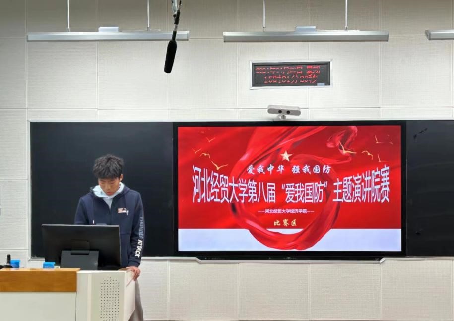 比赛过程中,选手们对一桩桩国防事件的阐述展现出了独到的见解,他们用慷慨激昂的语言讲出了令人振奋的故事。展望未来,他们宣示了自己勇于担当的决心,十足的感染力令我们深受触动。他们怀着浓厚的爱国情怀与坚定的理想信念表达了对国防的热爱与敬意,展现出了新时代青年之奕奕风采!选手们各抒己见,以文稿为帆、PPT配乐为桨、以热烈激昂的演讲为船,自由航行在伟大中国梦,国防梦的富强航线上。选手们的热情演讲所展现的青年之思、青年之悟、青年之志迎来评委们的热烈掌声,让观众情不自禁地想为他们的表现和所展现的经济学子的青年精神面貌而喝彩。