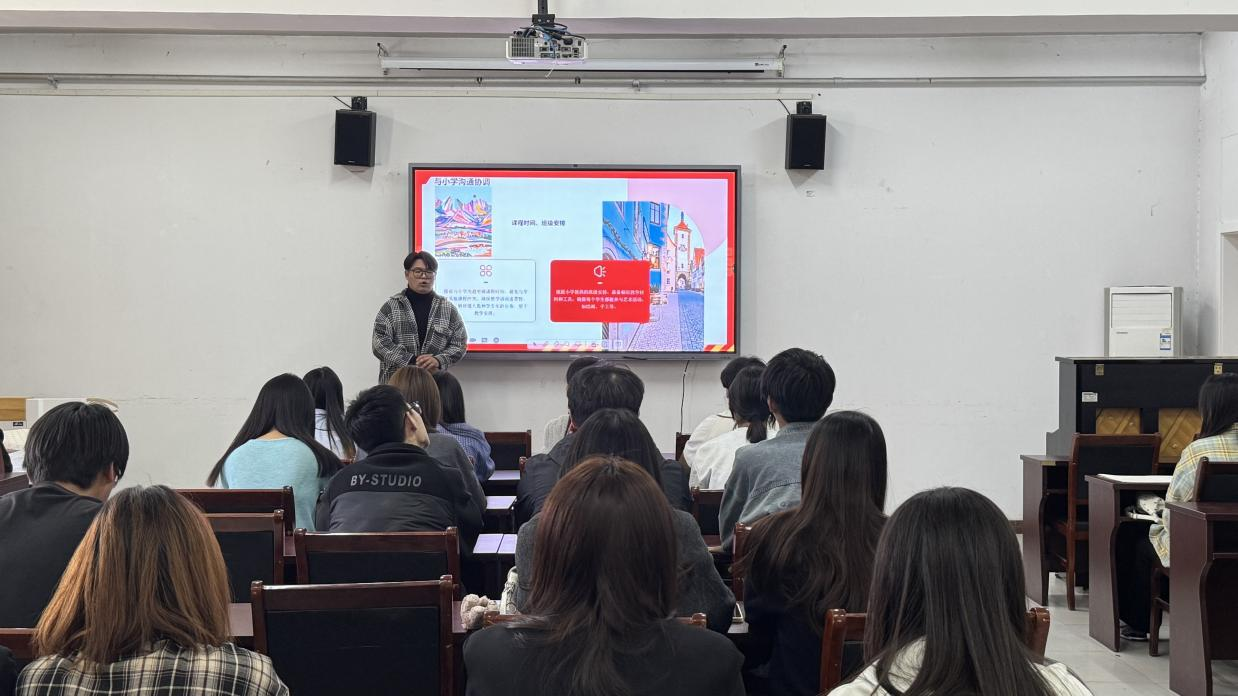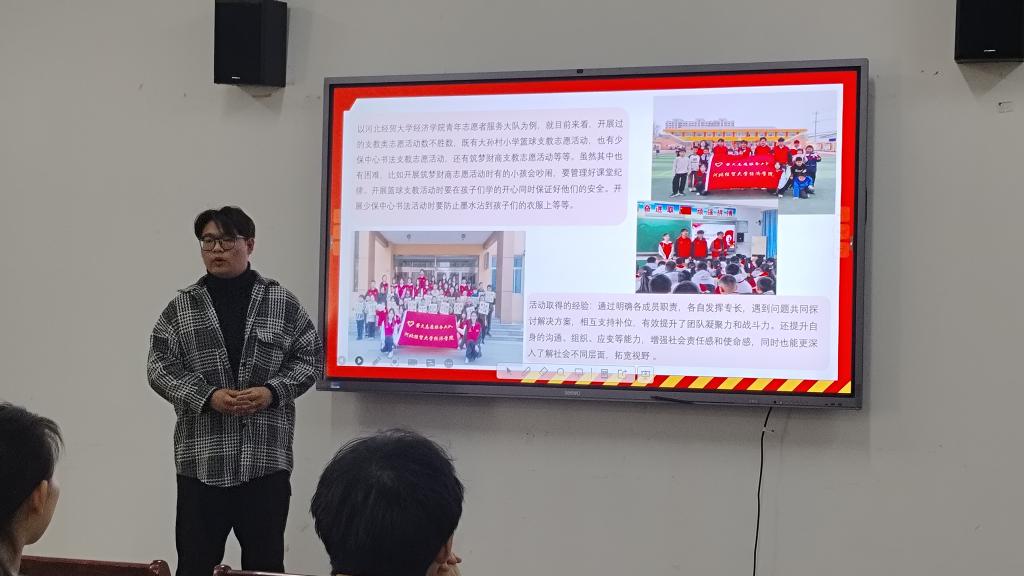 本次培训两公司分工明确、相互配合。2023级经济三班的韩昀辰同学以bg大游集团官方网站青年志愿者服务大队在雷锋月主办的系列支教活动为例,为参与培训的老员工志愿者讲解小学支教关键技能,包括教学准备、课堂管理、互动技巧等,帮助志愿者顺利推进支教活动。